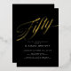 Moderne minimaliste Cinquante Black Gold 50e Anniversaire Foil Invitation. Pour une invitation à l'anniversaire, le design incarne le chic moderne avec un jeu minimaliste de couleurs noir et or. L'invitation présente un arrière - plan noir élégant avec une élégante typographie de script doré ajoute une touche de raffinement, créant un look sophistiqué et contemporain. L'ensemble est propre et épuré, ce qui permet à l'écriture design et au design minimaliste de briller, ce qui donne une invitation à la fois chic et moderne.