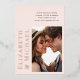 Minuscule rose pâle moderne sauvez le faire-part mariage date avec votre photo et vos noms en gros caractères gras écrit en feuille d'or rose. Ajoutez vos détails en typographie simple.