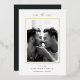Partagez l'actualité de votre prochain mariage avec ces cartes de dates élégantes et modernes, avec une photo verticale ou portrait bordée d'or, avec "enregistrer la date" en haut. Personnalisez avec votre date mariage, vos noms et votre emplacement le long du bas, et ajoutez des détails supplémentaires à l'arrière.