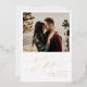 Elegant minimalist modern chic script design and timeless serif font in real gold foil, with couples photo, simple and clean. Great save the date cards for romantic minimalist wedding, modern classic wedding, simple luxury wedding.