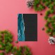 The left-hand edge of this elegant modern wedding invitation features a teal watercolor agate border trimmed with faux silver glitter. The customizable text combines real silver foil handwriting, copperplate and italic fonts on a dark off-black background. The reverse side features a matching teal and silver agate design.