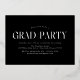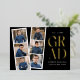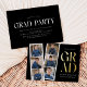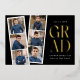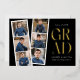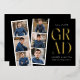 Invitations branchés de la fête de remise des diplômes avec une bande de film avec 6 photos carrés du diplômé. "Grad" est affiché en papier doré moderne avec un arrière - plan noir. Personnalisez le devant de l'invitation de la fête de graduation multiphoto en ajoutant le nom du diplômé, le nom de l'école et l'année de graduation. L'invitation inverse pour afficher les détails de votre fête de remise de diplômes en lettres blanches avec un arrière - plan noir. L'invitation de la fête de fin d'études est parfait pour les diplômés du secondaire et du collège.