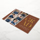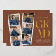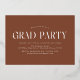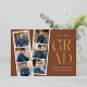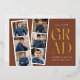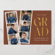Invitations branchés de la fête de remise des diplômes avec une bande de film avec 6 photos carrés du diplômé. "Grad" est affiché en papier doré moderne avec un arrière - plan brun. Personnalisez le devant de l'invitation de la fête de graduation multiphoto en ajoutant le nom du diplômé, le nom de l'école et l'année de graduation. L'invitation inverse pour afficher les détails de votre fête de remise de diplômes en lettres blanches avec un arrière - plan marron. L'invitation de la fête de fin d'études est parfait pour les diplômés du secondaire et du collège.