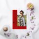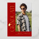 Celebrate your graduate in timeless, elegant style with this modern real gold foil graduation invitation. Set against a trendy red background, the design features trendy serif “GRADUATE” typography running vertically down the side, creating a refined focal point. A stylish graduation cap icon sits above the “R,” while the flowing tail of the letter transforms into a sleek tassel—leading the eye to a standout photo of the graduate.