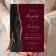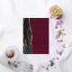 Le bord gauche de cette élégante faire-part de mariage moderne est orné d'une bordure en aquarelle noire ornée d'une parties scintillant en faux or. Le texte personnalisable combine écriture manuscrite, copperplate et polices italiques en feuille d'or réelle sur un arrière - plan bordeaux. L'envers est assorti d'un design d'agate noir et or.