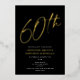 Cette invitation pour une fête d'anniversaire moderne pour les 60 ans présente un fond noir chic avec une écriture en relief en feuille d'or et une typographie blanche et moderne. L'écriture dit "60 ans". Toutes les couleurs sont entièrement et facilement personnalisables. Vous pouvez même ajouter une photo au verso ! Utilisez simplement "l'outil de conception" dans le menu déroulant de personnalisation. Le feuilletage en relief est disponible en or, argent et or rose. Choisissez une impression à la feuille pour ajouter un facteur "waouh" à vos prochaines invitations de fête !