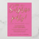 Présentation d'une nouvelle invitation à la fête d'anniversaire adulte moderne et élégante avec arrière - plan rose avec texte de typographie manuscrite en or dévoilé qui dit "shh! c'est une fête surprise". Customisez cette carte de modèle en ajoutant vos propres informations de fête.