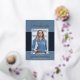 Une carte de faire-part de graduation photo unique, avec des éléments de design d'élégant script de style manuscrit. Le mot "Graduate" et le nom des finissants dans le papier à feuilles réelles (les options de couleur de papier sont or, argent et rose). La photo des finissants est bordée d'une bordure blanche et d'une garniture ondulée décorative. Le design est complété par un arrière - plan dans les tons bleu poussiéreux. Le dos de la carte offre un espace de texte personnalisé pour ce diplômé spécial. Pour voir d'autres articles comme celui-ci, visitez mon magasin ici à "www.Zazzle.com/LakeViewCardCo". Merci