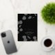 Magnifique invitation de mariage à motif de feuille d'or noir et gris avec détails de feuillage en feuille d'or, un brin élégant de feuilles d'eucalyptus, dessin d'art en ligne de verdure minimaliste, simple et élégant et parfait pour un téléchargement imprimable DIY botanique ou une invitation de mariage imprimée moderne. Des modèles faciles à utiliser avec une typographie blanche élégante sur fond noir. Invitations de mariage uniques créées par un artiste pour rappeler aux amis et à la famille de garder la date libre. Un design d'invitation de mariage minimaliste en noir et blanc avec feuillage. Œuvre originale de l'artiste Catherine Sweetman