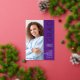 Moderne Grad 2025 Graduation Photo Purple Gold Foil. L'élégance de la vraie feuille d'or pour la typographie pivotée, Grad et pour le slogan Elle l'a fait ! Fêtons, avec le reste du texte en blanc et la photo de votre diplômé à gauche. Personnalisez facilement le texte à vos détails et remplacez l'exemple de photo par le vôtre.