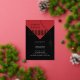Classe moderne & audacieuse de 2022 invitation de la fête de graduation avec un casquette gris rouge avec un moule en feuille d'or sur un arrière - plan noir. Visitez notre boutique pour voir ce design dans une variété de couleurs scolaires.