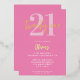 Une simple invitation moderne 21ème anniversaire avec une élégante typographie de script de calligraphie et un design minimaliste en rose et blanc.