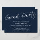 C'est une invitation moderne et simple à la fête de remise de diplômes. Il utilise un design manuscrit minimaliste en bleu et blanc classique avec "Grad Party" en papier argenté élégant. Veuillez contacter le concepteur pour toute question concernant ce design.
