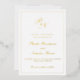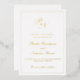 Mariage traditionnel enregistrez la carte de date avec un design simple et classique avec votre deux monogramme initial et vos noms dans une calligraphie élégante à l'intérieur d'une mince bordure. Tous les éléments de conception sur le devant sont en véritable feuille d'or. Ce design élégant est parfait pour un mariage formel.