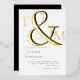 Invitation En Aluminium Monogramme moderne Noir & Blanc Mariage Or