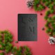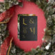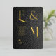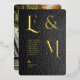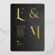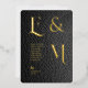 Arrière - plan moderne en cuir noir avec une véritable typographie de feuille d'or et un arrière - plan de photo. Des initiales monographiques branchées assurent que ce faire-part de mariage a un élément de drame et de sophistication.
