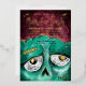 Monster bash Zombie thème Halloween parti réel foil invitation design. Le design présente notre propre illustration dessinée à la main d'une vue rapprochée du visage d'un monstre Zombie avec des cerveaux. "Monster Bash" s'affiche dans une écriture manuscrite stylisée en blanc avec les détails de la fête d'Halloween affichés sur l'oeuvre Zombie pour créer un design audacieux et unique d'invitation de fête d'Halloween. L'envers est orné d'une bande verte grondée et rustique. Toutes les illustrations contenues dans cette audacieuse invitation à thème Zombie Halloween sont des oeuvres d'art originales dessinées à la main par Moodthology.