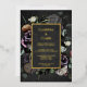Moody bold floral foncé noir et or mariage invitation feuille . Faire-part de mariage gothique moderne.