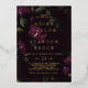 Cette invitation à la feuille de mariage motif noir est parfaite pour un mariage moderne. L'élégant design floral présente des fleurs de tulipe violet de prune foncée et des feuilles vert émeraude avec des lettres et des accents de papier doré pressé luxueux.
