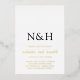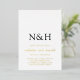 Faire-part de mariage moderne avec un design simple et minimal avec votre monogramme en caractères gras avec vos noms dans un élégant script d'écriture manuscrite. Tout le texte est en feuille d'or réel sauf pour votre monogramme qui est noir. Votre monogramme peut être modifié en feuille dans l'outil d'édition de conception.
