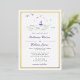 Un élégant faire-part de mariage classique, minimaliste et moderne avec un club de yacht, un thème nautique, avec une empreinte d'encre sur les vagues de l'océan, un petit bateau et des mouettes qui survolent, ainsi que quelques éléments en feuille d'or : le cadre double et quelques vagues baisées par le soleil. Il présente également les monogrammes de la mariée et du marié, la typographie classique avec une touche moderne, et la calligraphie traditionnelle pour les noms de la mariée et du marié. Vous pouvez personnaliser complètement ce do-it-yourself faire-part de mariage.