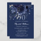 Invitation En Aluminium Navy Silver Rose Butterfly 90th Birthday
