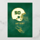 Score un toucher avec cette invitation personnalisable d'anniversaire sur le thème du football! Doté de véritables éléments en feuille d'or, dont un casque et un design épuré, cette invitation est parfaite pour les amateurs de couleurs de football vert et or. L'âge sur le casque est entièrement personnalisable, ce qui le rend idéal pour des anniversaires jalons comme un 50ème anniversaire ou toute célébration d'âge. Parfait pour les amateurs de football, les fêtes sportives ou les fêtes sur mesure.