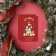 Invitation en feuille métallique rouge pour un Noël avec un chat mignon !