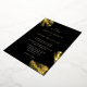 Ce faire-part de mariage botanique minimaliste moderne en noir et or en feuille réelle présente de beaux feuilles en or Monstera et le nom du couple en feuille d'or véritable sur un élégant arrière - plan noir et un solide support noir. Pour les produits correspondants, visitez notre collection .