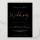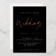 Calligraphie à huile d'or noir moderne Faire-part de mariage de script avec votre choix de feuille réelle : or, rose ou argent. Changez la couleur du papier à papier à une autre couleur si vous le souhaitez. La couleur Arrière - plan peut également être changée de noir à n'importe quelle autre couleur - utilisez simplement l'outil de conception et découvrez toutes les options.
