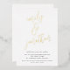 Noms de script élégants Code QR Mariage Luxe. Un design entièrement personnalisable avec une impressionnante véritable feuille d'or pour vos noms dans un choix d'or, d'or rose ou d'argent. Remplacez l'exemple de code QR au dos par le vôtre, ce qui en fait une option pratique pour vos invités pour répondre et voir tous les détails sans avoir besoin de cartes de réponse et de détails séparées. Style informel minimaliste avec un style de script manuscrit pour vos noms.