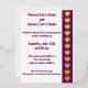 Apportez une touche de plaisir geek à votre événement avec ce faire-part de mariage avec une bordure de vin riche sur le côté droit, décoré d'un motif de coeurs pixélisés imprimés en papier d'aluminium. Le côté gauche de la carte offre beaucoup d'espace pour tous les détails de votre événement sur le thème du jeu vidéo avec un exemple de texte en place qui peut être customisé pour répondre à vos besoins. Un grand coeur 8 bits de vin finit les choses sur le dos pour créer une jolie note finale. Cette invitation sera en accord avec tout autre produit Nos Coeurs 8 bits dans le vin afin que vous puissiez facilement rendre votre événement aussi coordonné que vous le souhaitez.