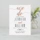 "We do" véritable feuille d'or rose faire-part de mariage avec belle écriture cursive style calligraphie manuscrite. Une motif géométrique poussiéreuse et blanche couvre le dos.