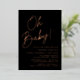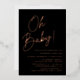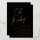Invitations simples de douches bébé avec "Oh Baby !" affichées dans un script en papier or rose avec un arrière - plan noir. Personnalisez les invitations minimalistes de douches pour bébé avec le nom de la mère et les détails de la douche. Les invitations pour les douches pour bébé en papier or noir et rose sont parfaites pour les baby showers sans sexe !