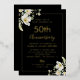 Invitation En Aluminium or 50e anniversaire à fleurs blanches
