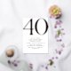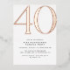 Style minimaliste moderne invitations à 40e anniversaire avec titre "40" texte en vrai papier métallique. Les détails de votre événement sont imprimés en noir mat. L'or rose est accentué de blanc.