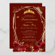 Invitation En Aluminium Or de fleurs Rouge Tiara Quinceanera
