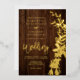 Véritable feuille d'or typographie de courre fleurie sur bois brun rustique chic mariage, parfait pour mariage élégant et luxueux, ajoutez votre photo à l'arrière.