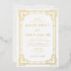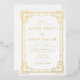 Invitations de mariage art déco moderne avec vos détails mariages en papier doré encadré par un cadre art déco en feuille d'or. Conçu pour se coordonner avec notre collection de mariages Art Déco Moderne.