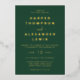 Moderne et élégant, ce faire-part de mariage chic en feuille d'or véritable présente une typographie contemporaine sur un vert chasseur | vert émeraude | arrière - plan vert forêt, parfait pour le couple moderne! Vous pouvez facilement changer la feuille d'or en feuille d'argent ou en feuille d'or rose.