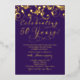 Feuille d'or véritable élégante et pourpre royale célébrant 50 ans d'anniversaire de mariage d'or 50ème invitation. Pour modifier le texte, utilisez les options de personnalisation. Pour des changements de texte plus importants, y compris la modification de la police, de la couleur de la police, de la taille de la police et/ou de l'emplacement du texte, utilisez l'option "personnalisez-le". Ce magnifique design de feuille d'or véritable et de pourpre royale célébrant 50 ans convient parfaitement à un anniversaire de mariage en or. Élégant et sophistiqué. Les parties dorées de cette invitation sont imprimées à l'aide d'une véritable feuille métallique dorée. La couleur de fond violet peut être modifiée dans l'outil de conception.