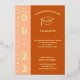 Celebrate your graduate's achievement with this elegant photo invitation in warm orange, soft peach, and cream. The front showcases your graduate's photo with classic typography and "Congratulations" messaging. Luxe gold foil accents add a formal, polished touch. The back provides a script-style layout for all party details—date, time, location, and RSVP information—easy for guests to reference at a glance.