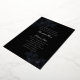Un cadre floral époustouflant avec des orchidées, dessiné à la main dans l'encre et revêtu d'une feuille d'argent, décore ce modèle formel élégant et sophistiqué qui présente une calligraphie élégante avec des fioritures délicates pour les noms, ainsi que les noms des parents dans le libellé, avec l'accueil des parents de la mariée. Le design noir et blanc avec une teinte argentée très délicate, sur un riche arrière - plan noir, accompagne parfaitement une affaire formelle et élégante. Ce faire-part de mariage d'art est un choix agréable pour les couples qui aiment l'art, les dessins artistiques, l'art unique et original et les modèles mariages traditionnels formels. Customisez chaque ligne de texte. Éléments correspondants disponibles.