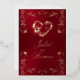 Ornate Frame & Heart - Red Foil Invitation featuring a ruby red background with an ornate frame, heart and bride & grooms first names in foil on the front. The details. are on a pearl white background on the back. Designed to coordinate with the "Ornate Frame & Hearts" Wedding Collection. To change details, click «Personalize». To move the text or change the text size, font, or color click «Click to customize further»