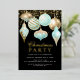 Cette invitation de vacances élégante présente de beaux ornements de Noël en aqua et or avec des guirlandes lumineuses dorées sur fond noir. Le texte peut être facilement modifié en cliquant sur "Personnaliser". Parfait pour les fêtes de famille ou d'entreprise.
