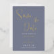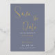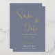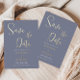 Palette de mariage bleu poussiéreux à économiser avec date en or avec invitation à feuille d'or