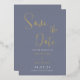 Palette de mariage bleu poussiéreux à économiser la date or feuille d'invitation