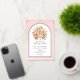 Arc rose doux véritable feuille d'or faire-part de mariage avec feuilles de palmiers séchés tropicaux, gazon de pampas et fleurs de protéa. Une arche en feuille d'or est placée sur un arrière - plan teinté rose doux. Un bouquet de feuilles de palmiers séchés, de fleurs de protéa et d'herbe de pampas est exposé dans le cadre.