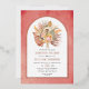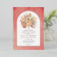 Feuilles tropicaux de palmiers séchés, pampas herbe et protéa fleurs arche rose véritable faire-part de mariage rose en feuille d'or. Ce joli design mariage dispose d'une arche rose en feuille d'or sur un arrière - plan coloré rose. Dans le cadre il y a un bouquet de feuilles de palmiers séchés, des fleurs de protéa et de l'herbe de pampas.
