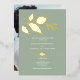 Donnez le ton de votre fête avec ces invitations élégantes et uniques à la fête de fiançailles, avec une bordure sophistiquée de vrais feuilles de feuille d'or sur un arrière - plan élégant vert sauge. Conçues pour une esthétique simple et moderne, ces cartes d'invitation allient beauté intemporelle et charme botanique branché. Personnalisez votre modèle en ligne avec des détails personnalisés, ce qui en fait un choix parfait pour une fête de fiançailles ou toute occasion spéciale. Découvrez d'autres dessins inspirés du feuillage sur Do Tell A Belle sur Zazzle : www.zazzle.com/dotellabelle.